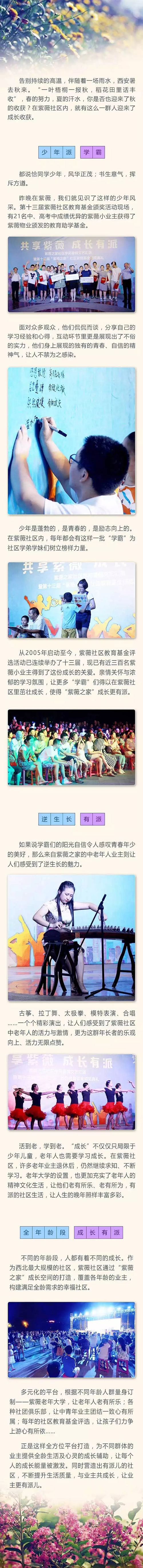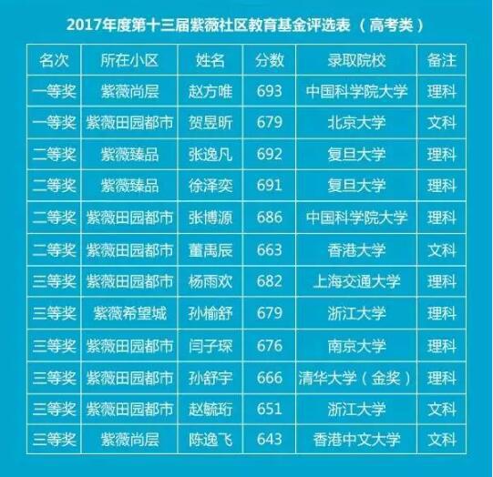 共享紫薇,共筑成長。8月9日,尋找紫薇“少年派”——第十三屆紫薇社區(qū)教育基金評選活動在紫薇物業(yè)大樓二樓舉行。由紫薇社區(qū)業(yè)委會代表、名校資深教師、紫薇物業(yè)領導組成的評審組經過激烈討論,嚴格評選,從百余名報名的小業(yè)主中評選出21名優(yōu)勝者,其中,高考組12名,中考組9名?! ≡诟呖冀M中,來自紫薇田園都